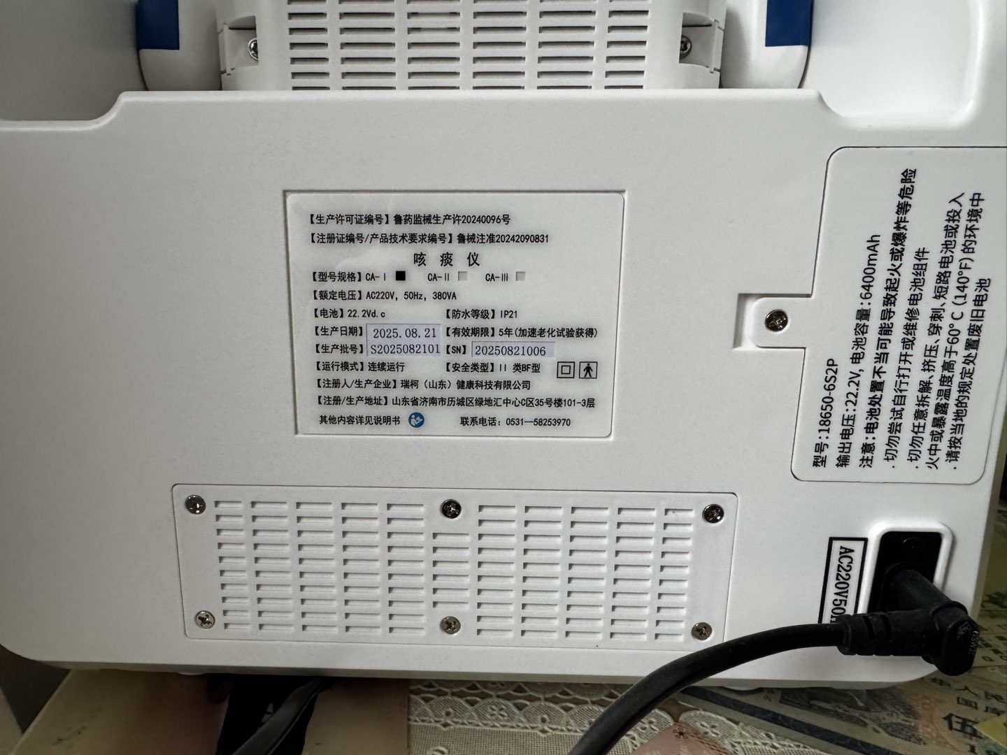 2025年10.31瑞柯 CA-1 咳痰机,原配东西齐全。