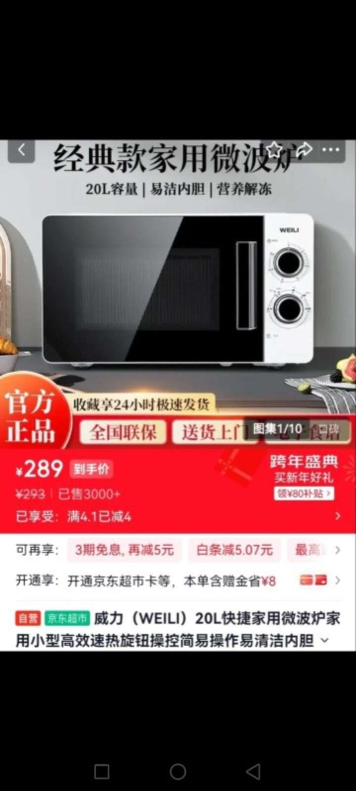 全新威力20升微波炉,未使用,就是拆封,全国质保,京东卖290,现在低价转让,