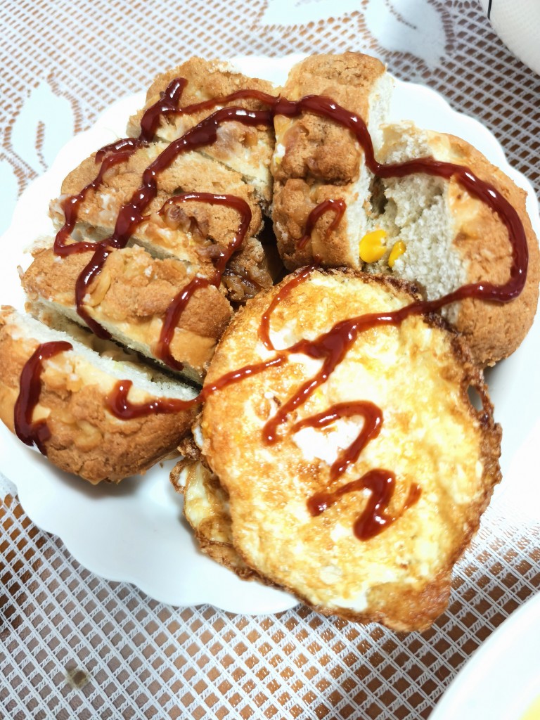 苹果小米粥+面包煎鸡蛋
