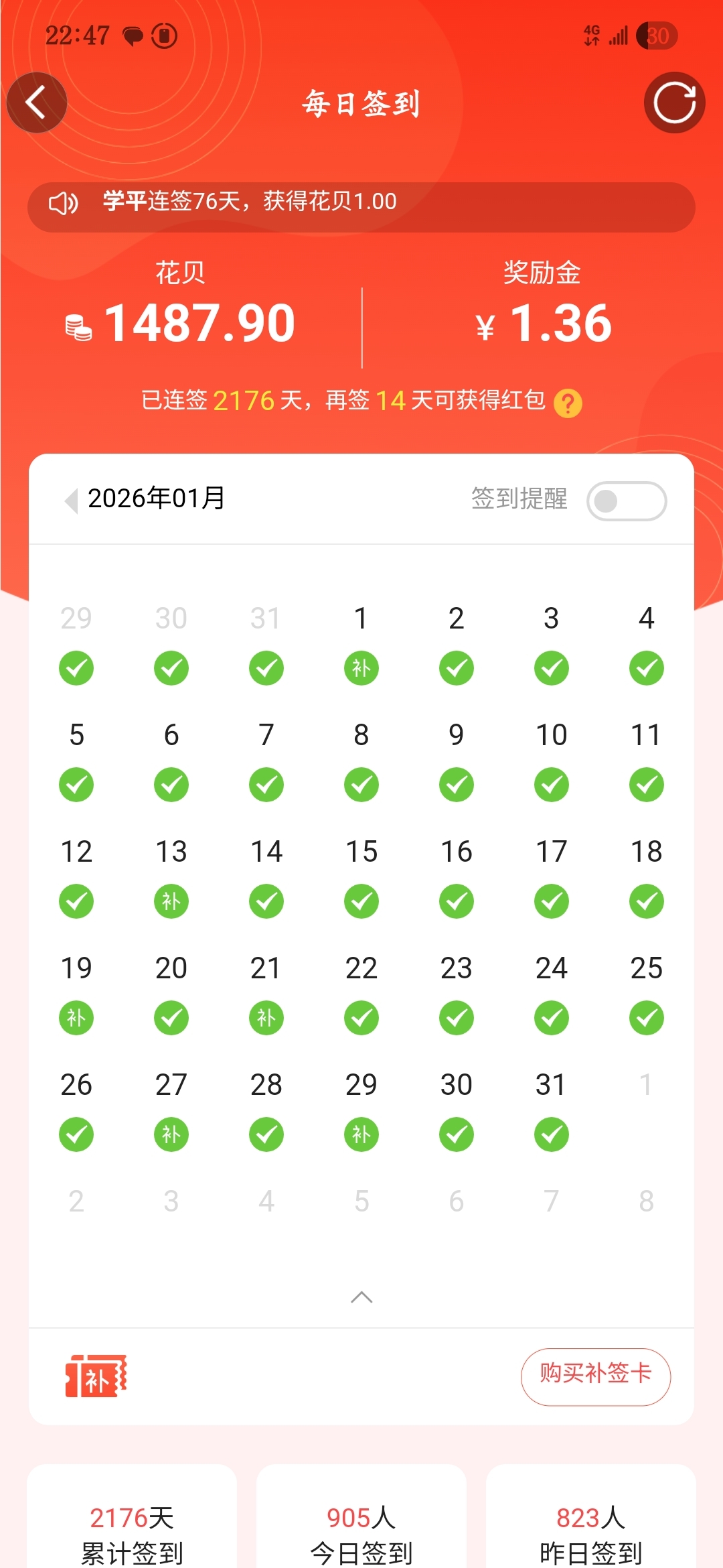 每月月底至下个月初,晒满勤的,打赏满勤奖哟~